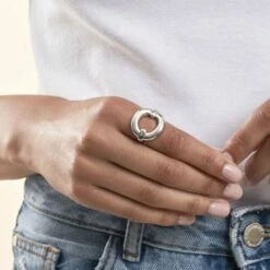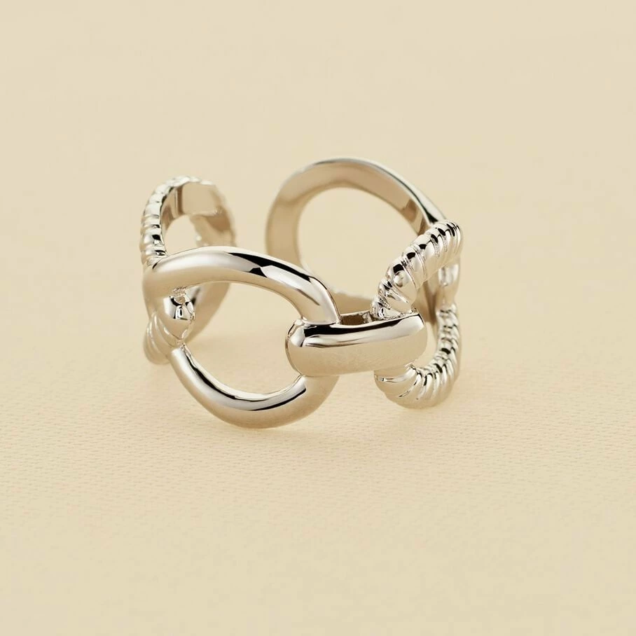 Bague, en argent véritable, formée par un entrelac de gouttes lisses et torsadées