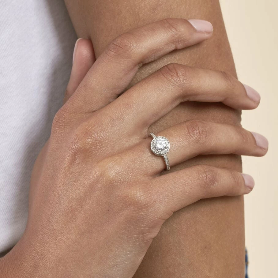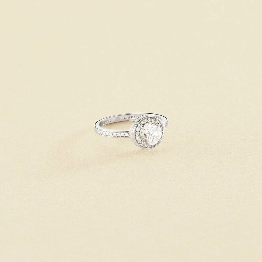 Bague solitaire en argent véritable orné d’un oxyde de zirconium XL rond entouré de mini-oxydes de zirconium