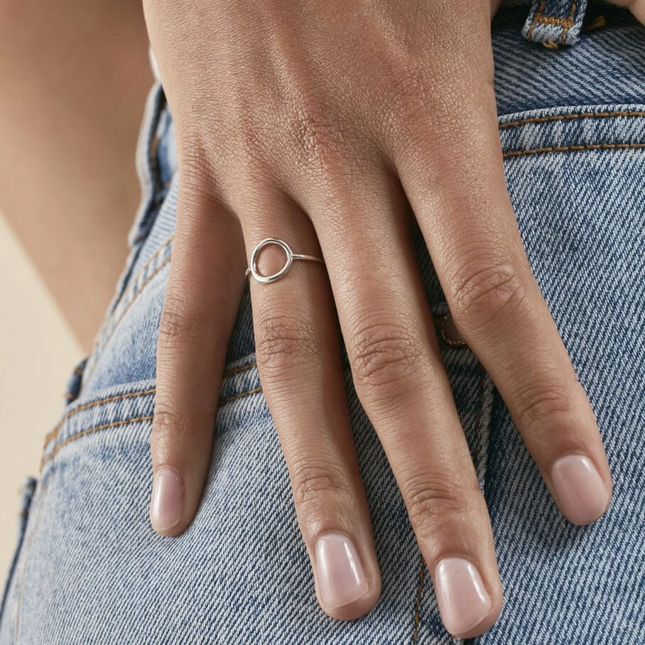 Bague, en argent véritable, avec un anneau évidé sur la partie supérieure