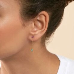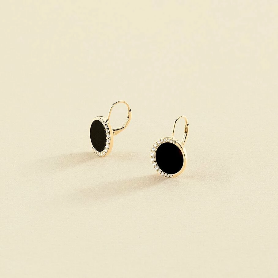 Boucles d’oreilles dormeuses, en argent véritable doré 750/1000, ornées d’une pastille en onyx et d’un motif lune serti d’oxydes de zirconium