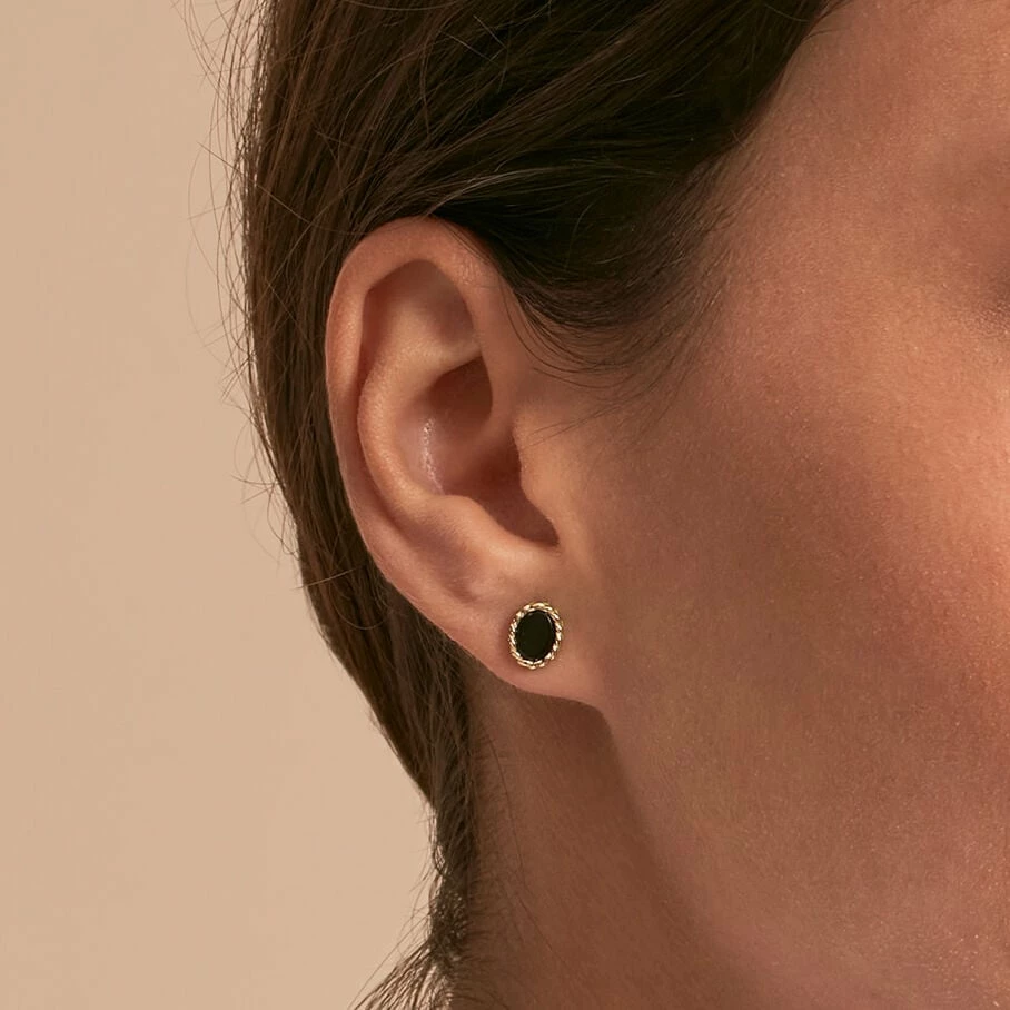 Boucles d’oreilles puces, en argent véritable 925/1000 dorées 750/1000, sertie d’une pierre fine. Un liseré d’émail, sur la tranche de la boucle, apporte une vraie touche d’originalité! Un modèle classique revisité pour affirmer style et personnalité!
