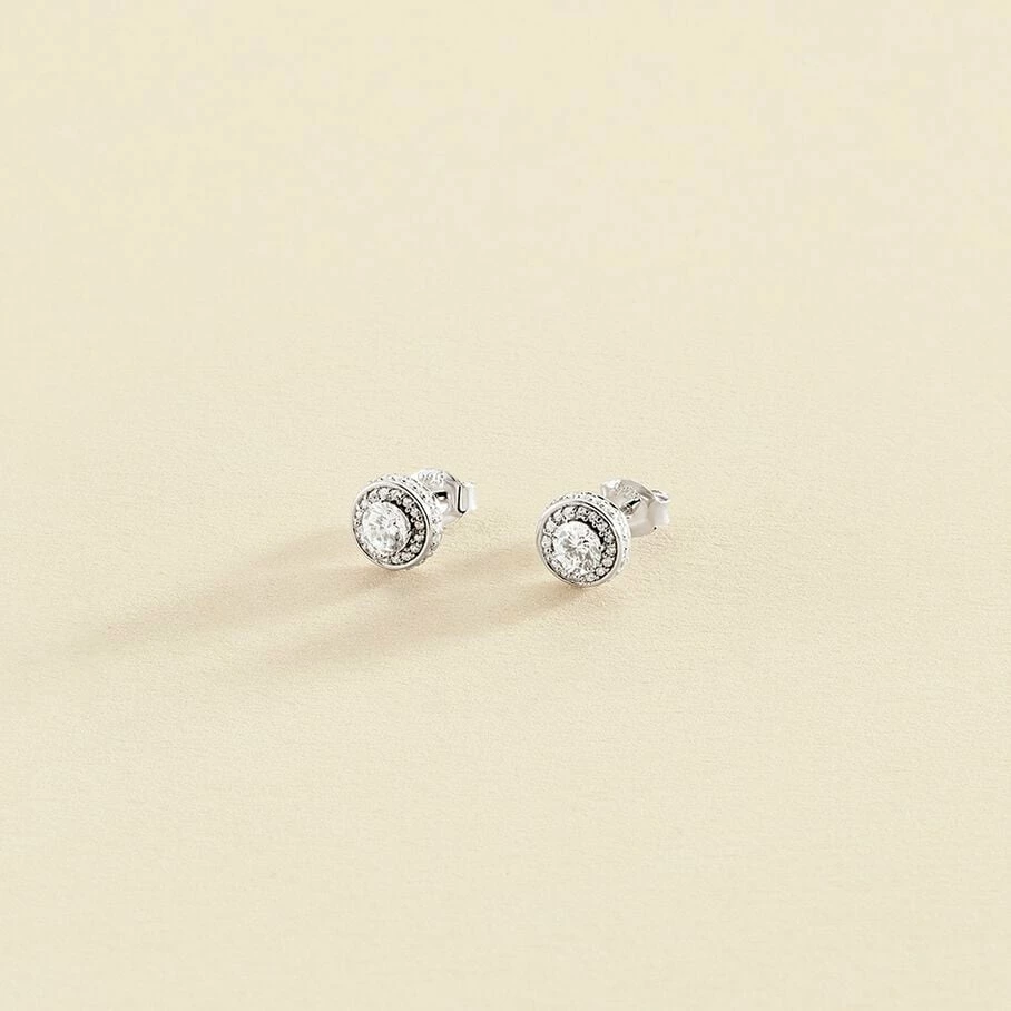 Boucles d’oreilles puces, en argent véritable, avec un mini oxyde rond autour duquel sont micro sertis des oxydes de zirconium