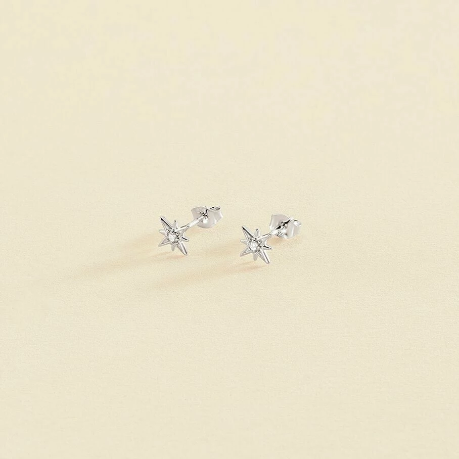 Boucles d’oreilles puces en argent véritable en forme d’étoile ornée d’un oxyde de zirconium au centre