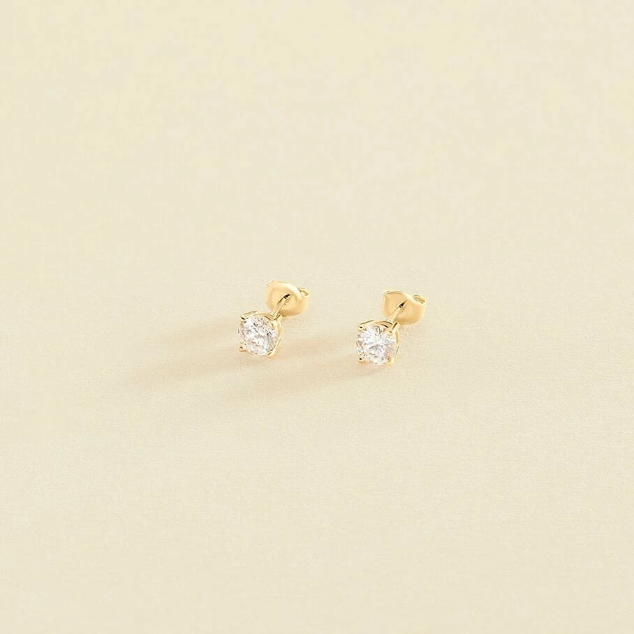 Boucles d’oreilles puces, en argent véritable dorées 750/1000, ornées d’oxydes de zirconium griffés de 5 mm