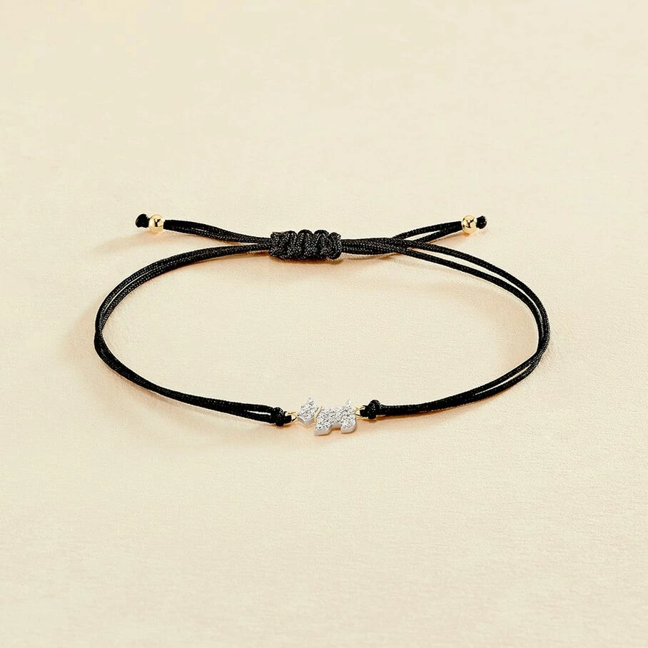 Bracelet cordon, en argent véritable doré 750/1000, orné d’un chien finement serti d’oxydes de zirconium