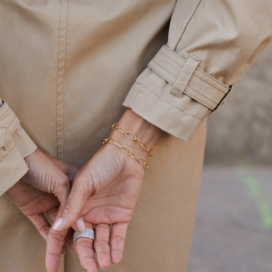Bracelet souple, en laiton doré, composé de maillons ovales allongés