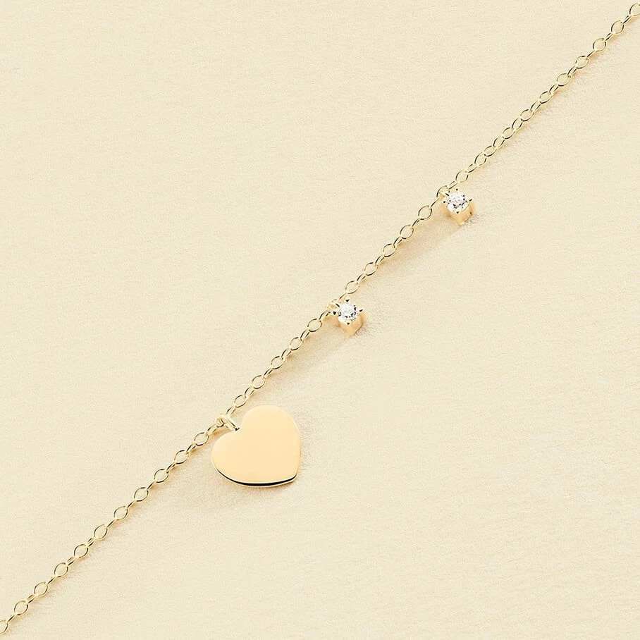 Bracelet, en argent véritable doré 750/1000, avec en breloque un coeur et deux oxydes de zirconium