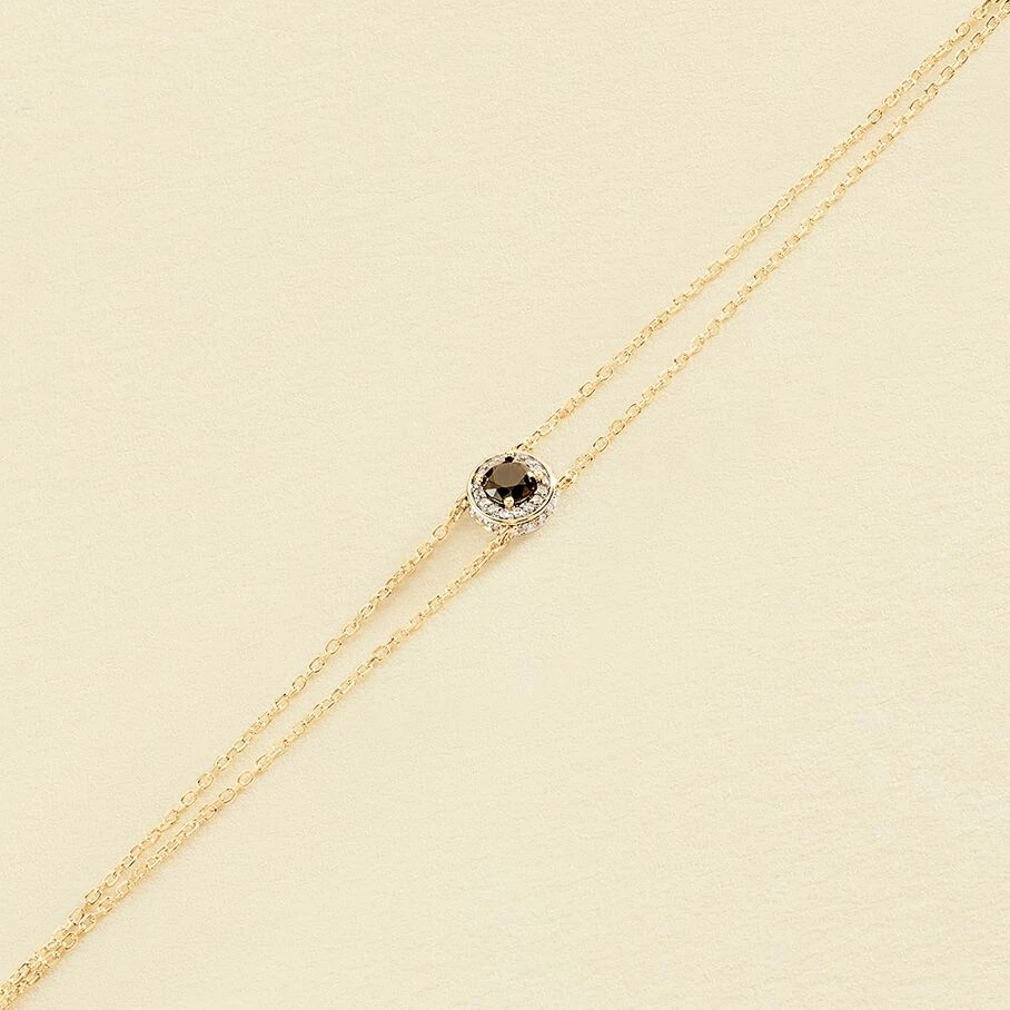 Bracelet chaine, en argent véritable doré 750/1000, avec un mini oxyde rond autour duquel sont micro sertis des oxydes de zirconium