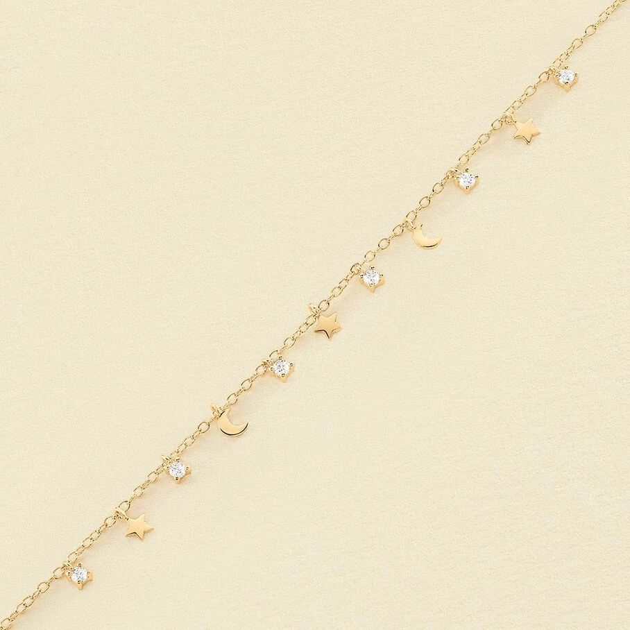 Bracelet, en argent véritable doré 750/1000, avec en pampille des petites lunes et des petites étoiles