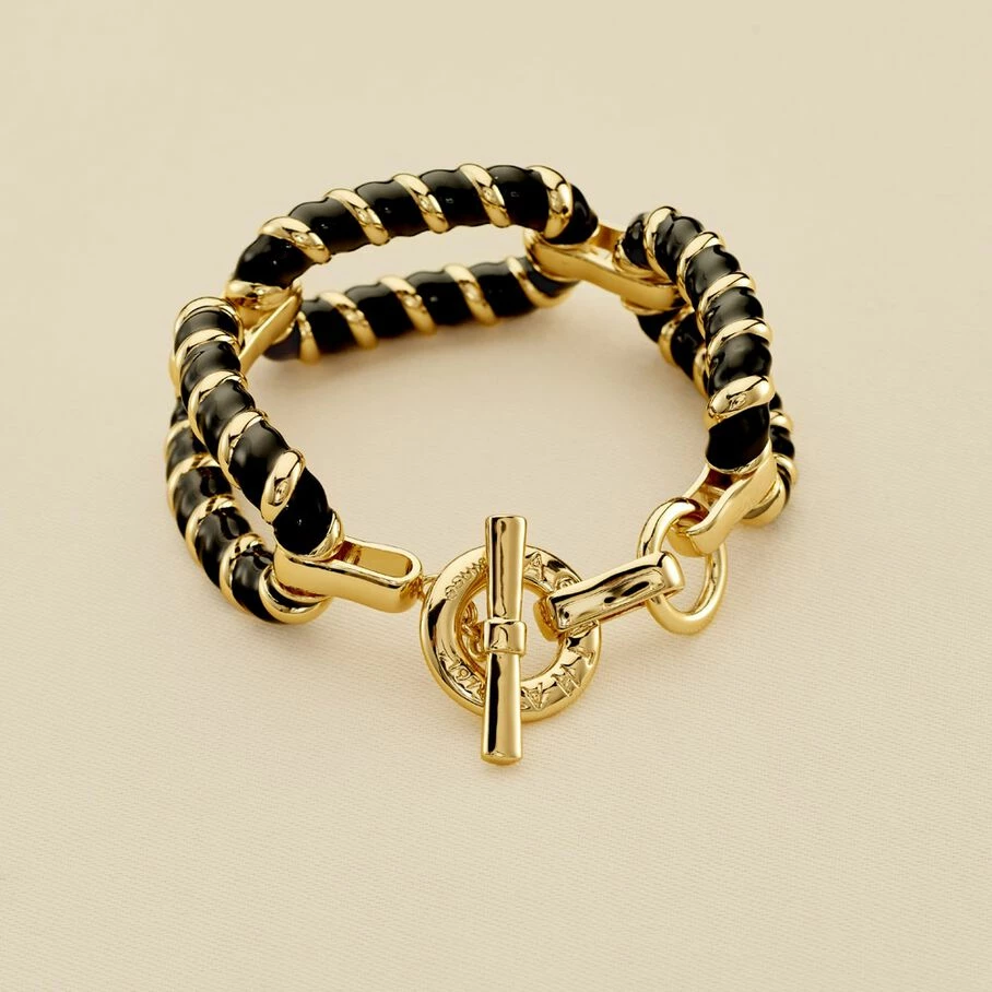 Bracelet, en laiton doré, 3 grands maillons effet torsadé en émail, fermoir batonnet
