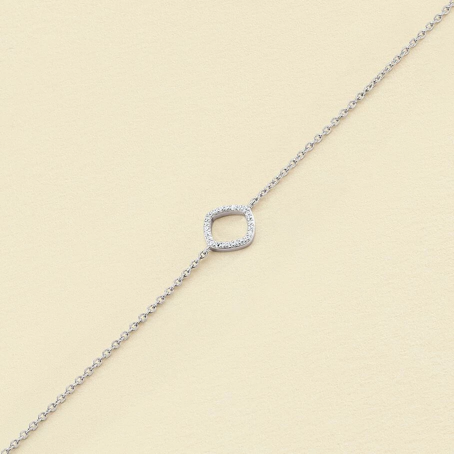 Bracelet souple en argent véritable orné d’un carré évidé pavé d’ oxydes de zirconium