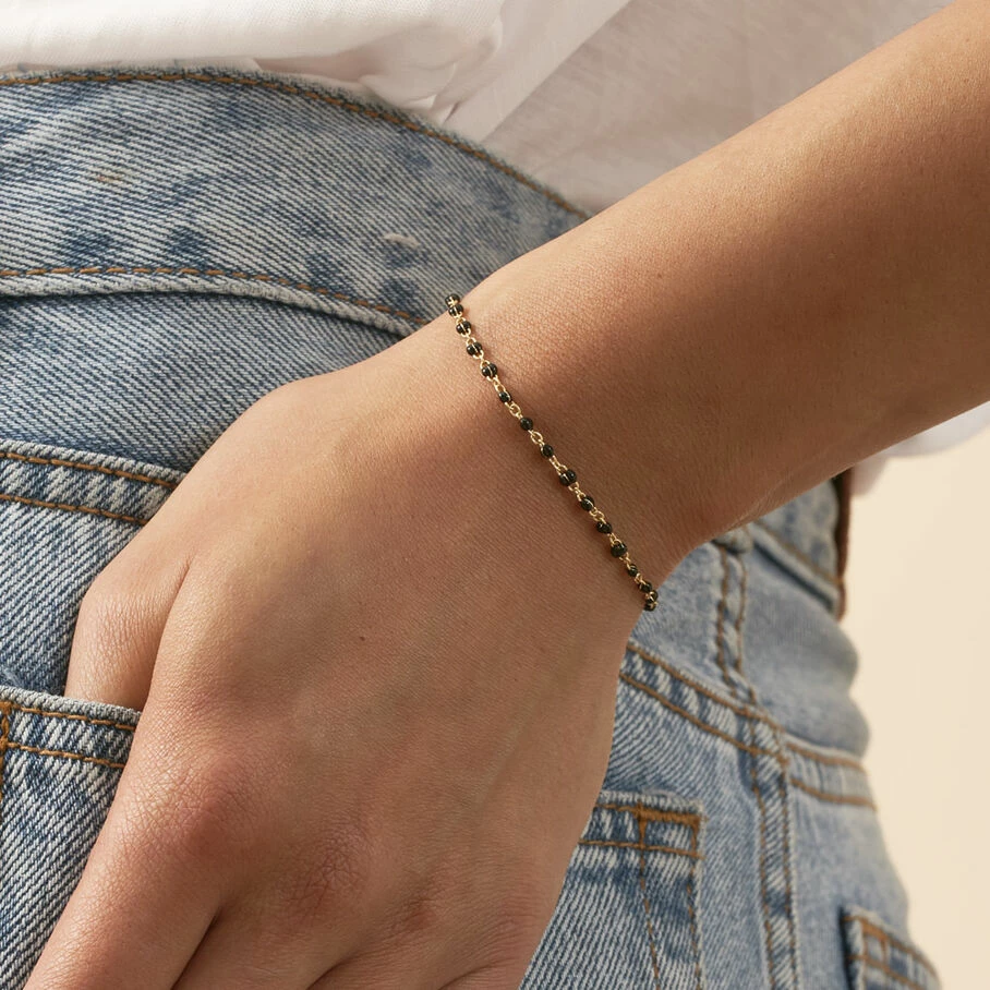Bracelet, en laiton doré 750/1000, perles d’émail sur toute la longueur