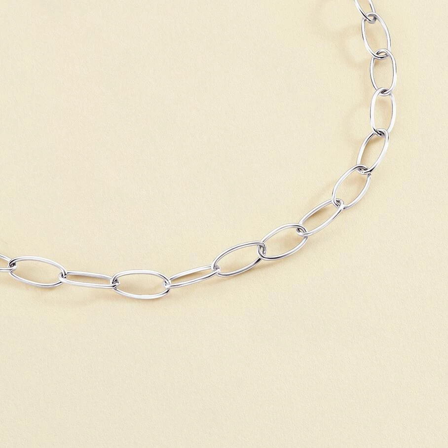 Collier chaine, en laiton rhodié, constitué de maillons ovales allongés