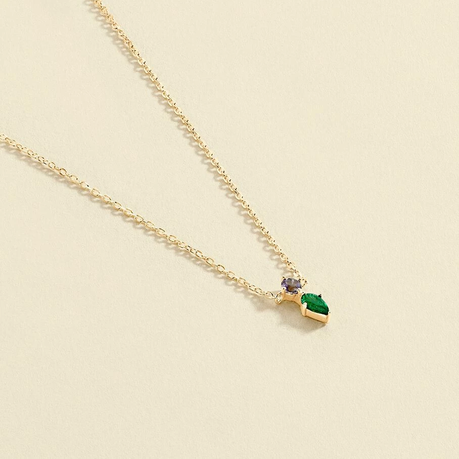 Collier court, en argent véritable doré 750/1000, avec des oxydes de zirconium multicolores en pendentif