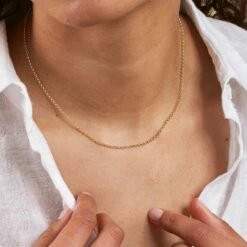 Collier court, chaine rectangle avec 5 oxydes de zirconium sertis griffes, en argent doré 750/1000