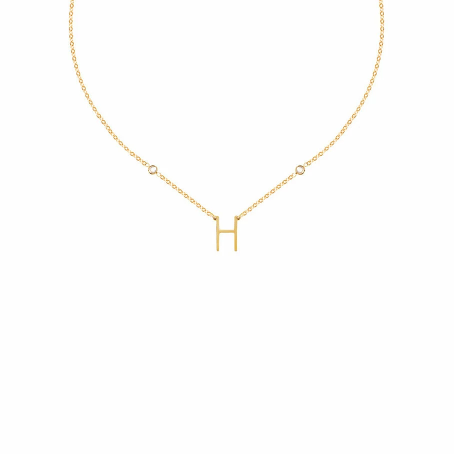 Collier fin composé de la lettre H et de deux oxydes de zirconium. Longueur: 42cm