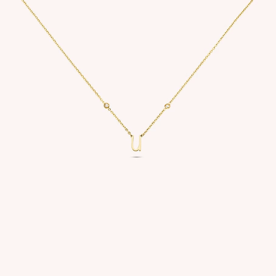 Collier fin composé de la lettre U et de deux oxydes de zirconium. Longueur: 42cm