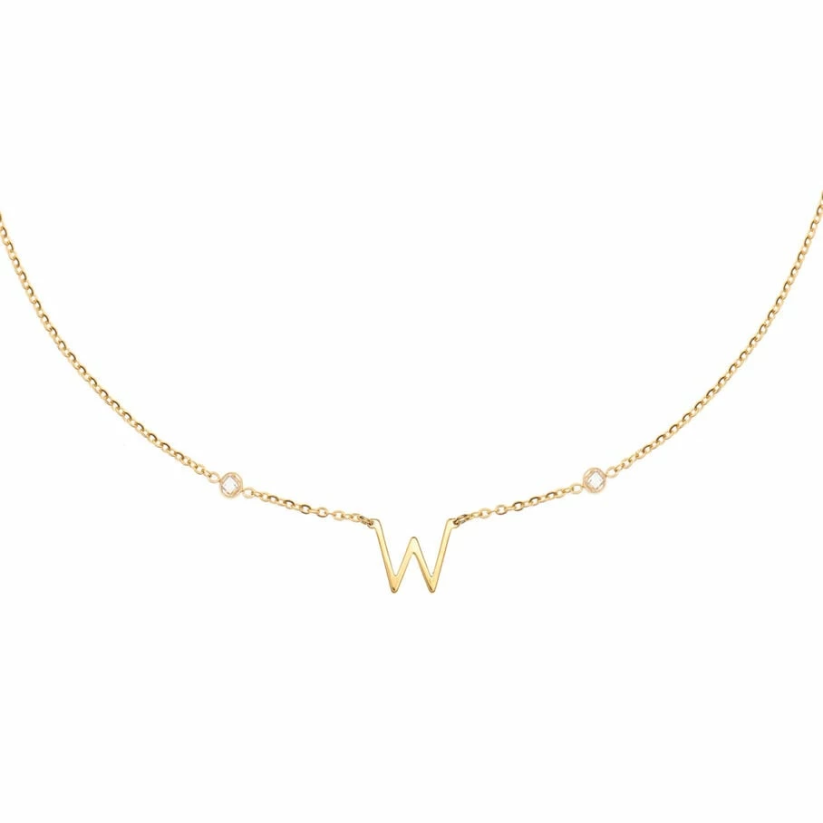 Collier fin composé de la lettre W et de deux oxydes de zirconium. Longueur: 42cm