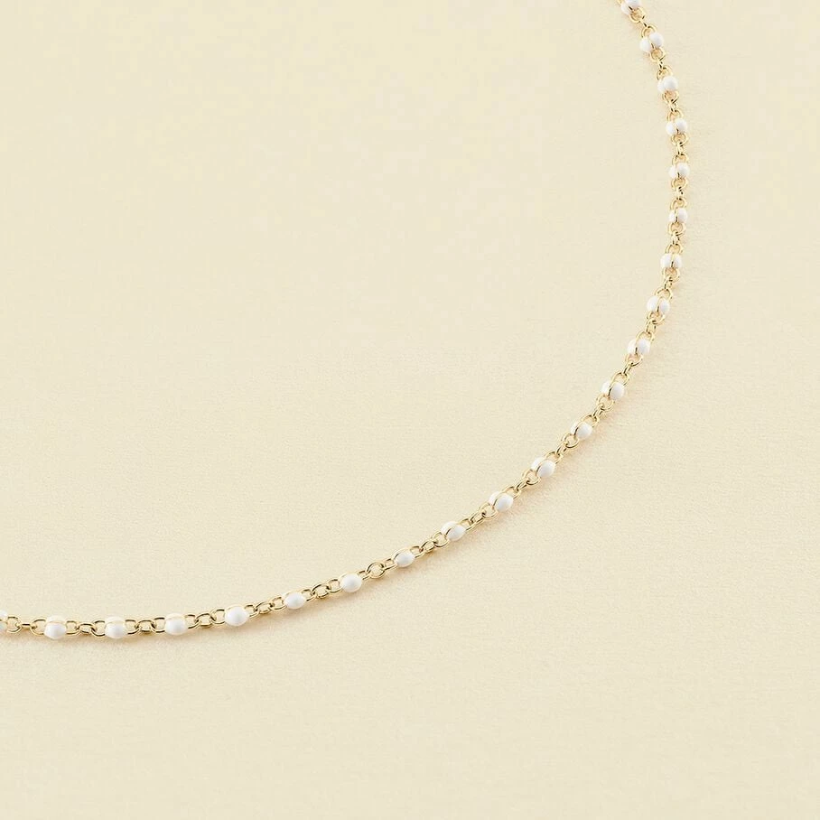 Collier court, en laiton doré 750/1000, perles d’émail sur toute la longueur