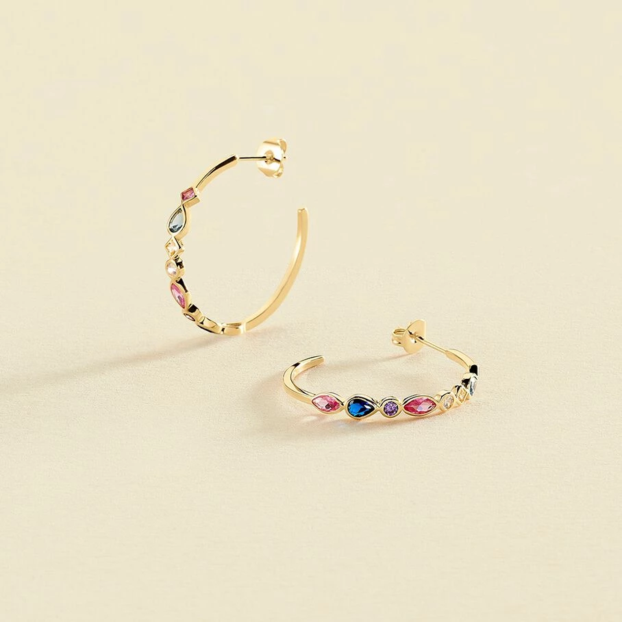 Créoles en laiton doré 750/1000 avec des oxydes de zirconium de différentes formes