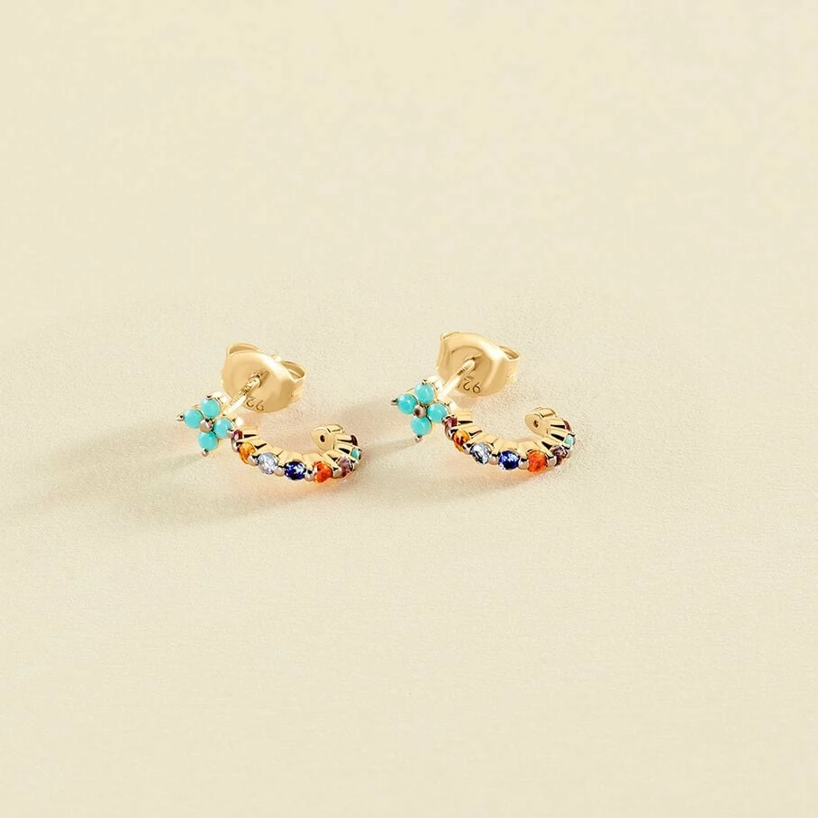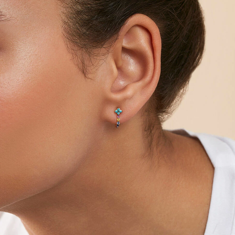 Boucles d’oreilles créoles, en argent véritable finement doré 750/1000, dont la partie supérieure a une forme de fleur