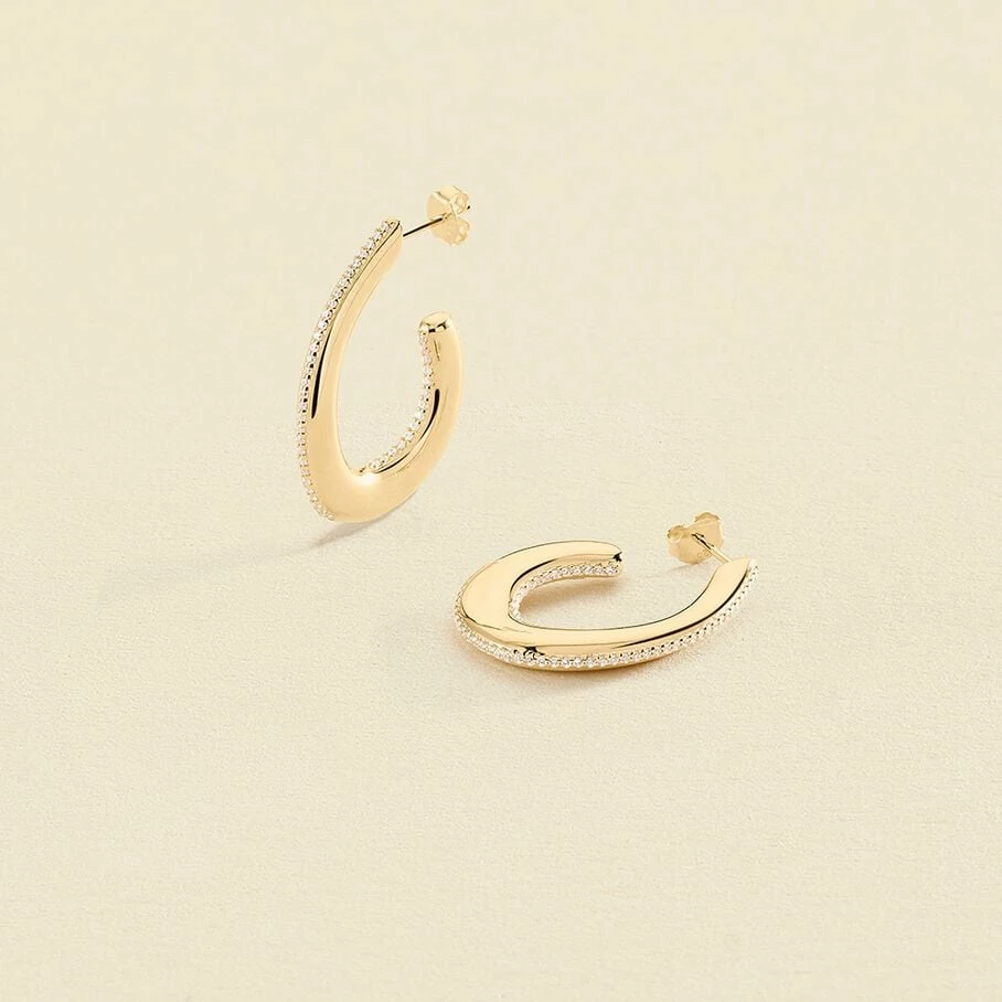 Créoles, grand modèle, en argent 925/1000 et dorées 750/1000, représentant une demi goutte et dont la tranche est sertie d’oxydes de zirconium