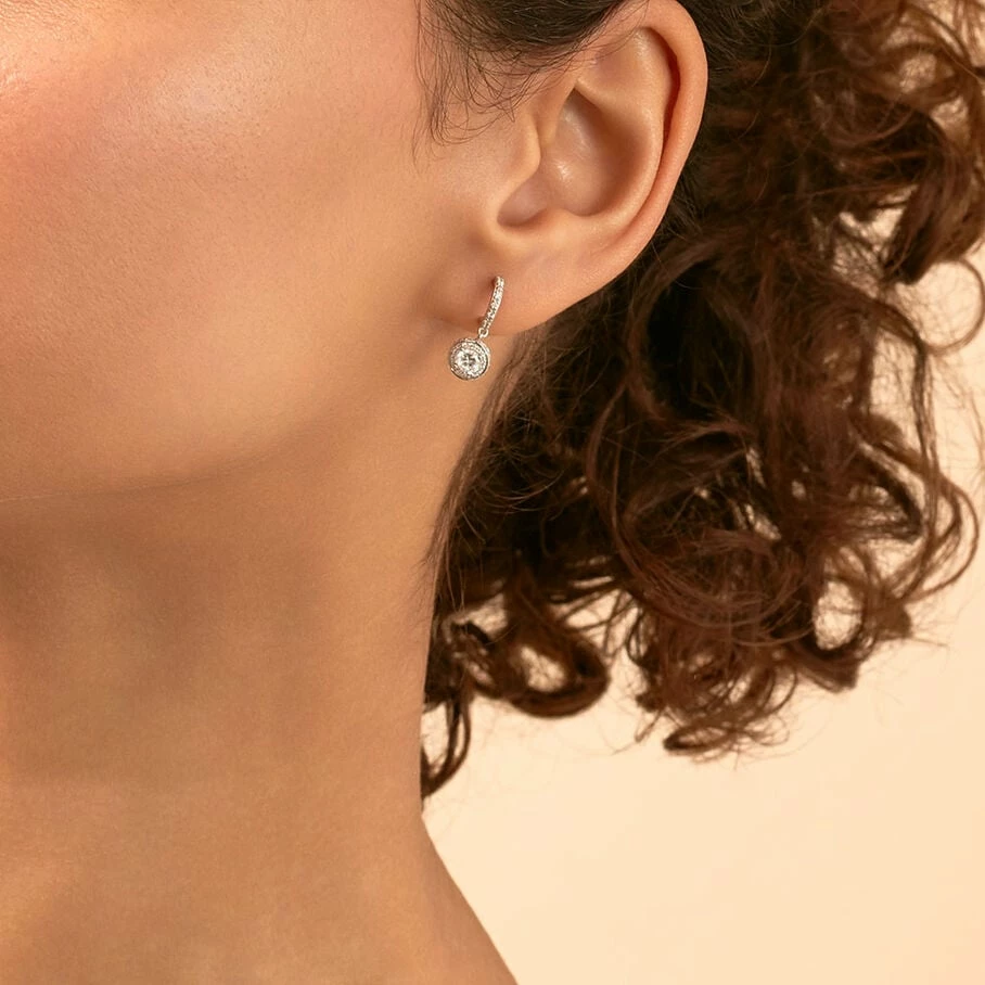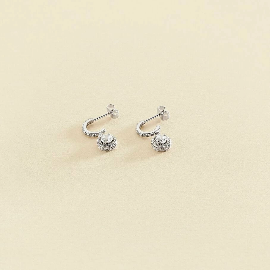 Créoles, en argent véritable, avec, en breloque, un mini oxyde rond autour duquel sont micro sertis des oxydes de zirconium