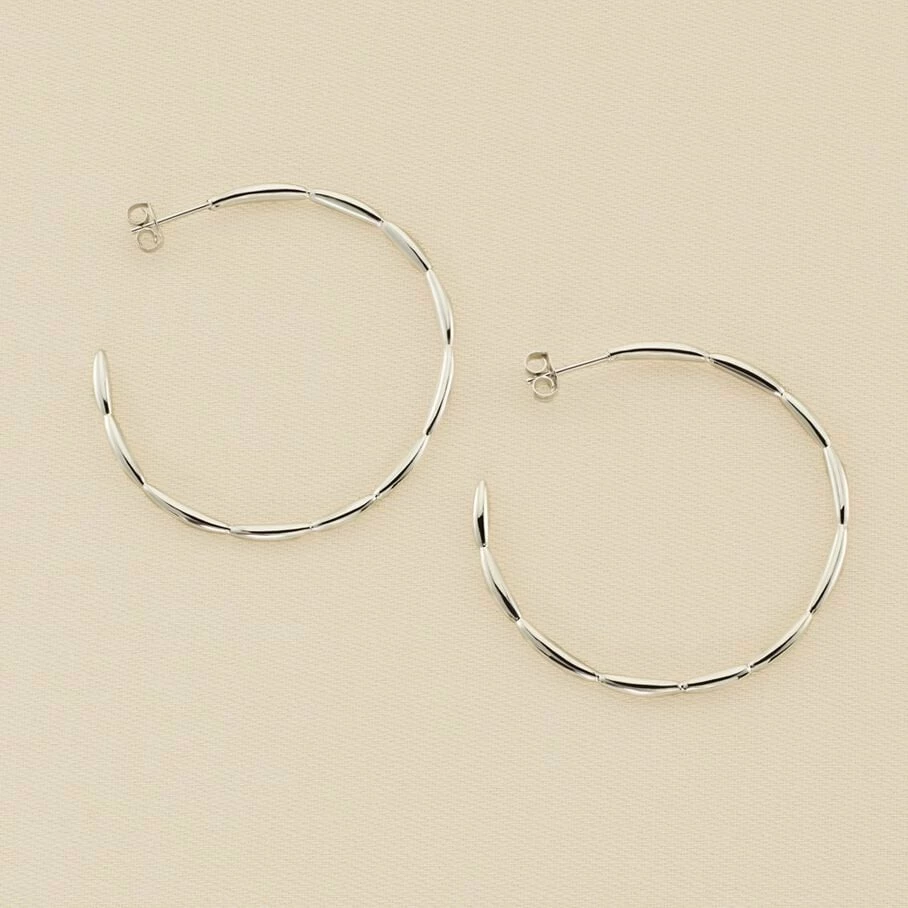 Créoles de 40mm de diamètre, en argent véritable 925/1000 au motif rayon de soleil.