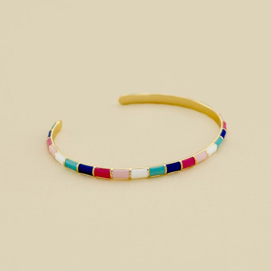 Jonc ouvert, en laiton doré 750/1000, sections émaillées multicolores