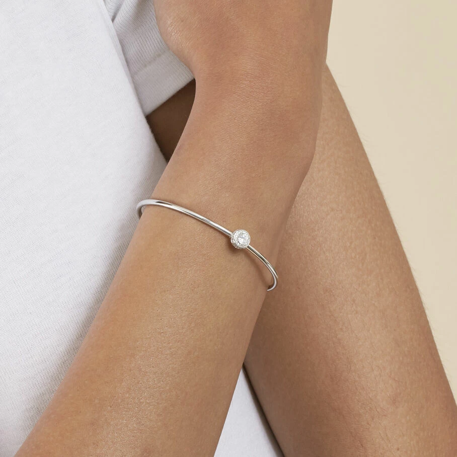 Jonc, en argent véritable, avec un mini oxyde rond autour duquel sont micro sertis des oxydes de zirconium