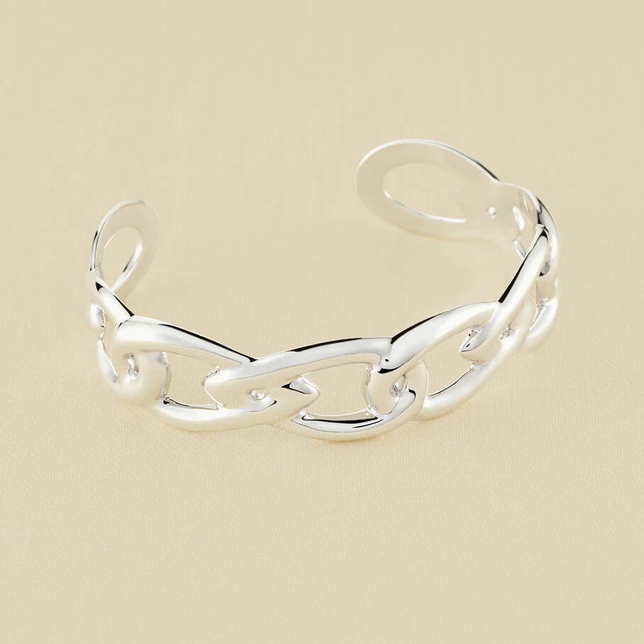 Manchette en argent véritable avec un jeu de maillons entrelacés.