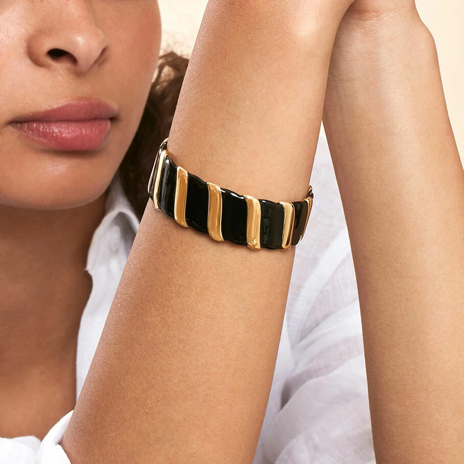 Manchette fine ouverte, en laiton doré, effet torsadé en émail