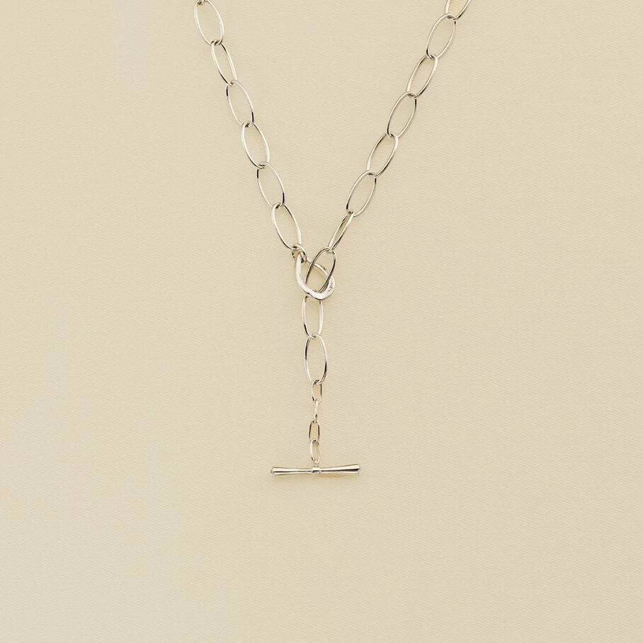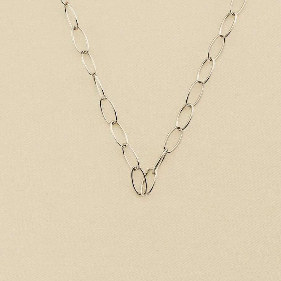 Collier multi-portés, en laiton rhodié, constitué de maillons ovales allongés. Il peut se porter aussi bien en collier mi-long qu’en collier Y!