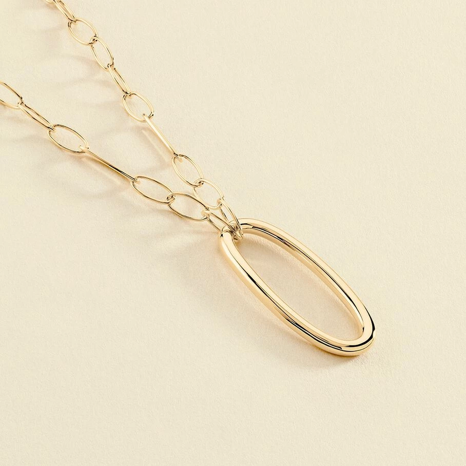 Sautoir, en laiton doré 750/1000, fait de maillons ovales allongés et dont l’un XL se porte en pendentif