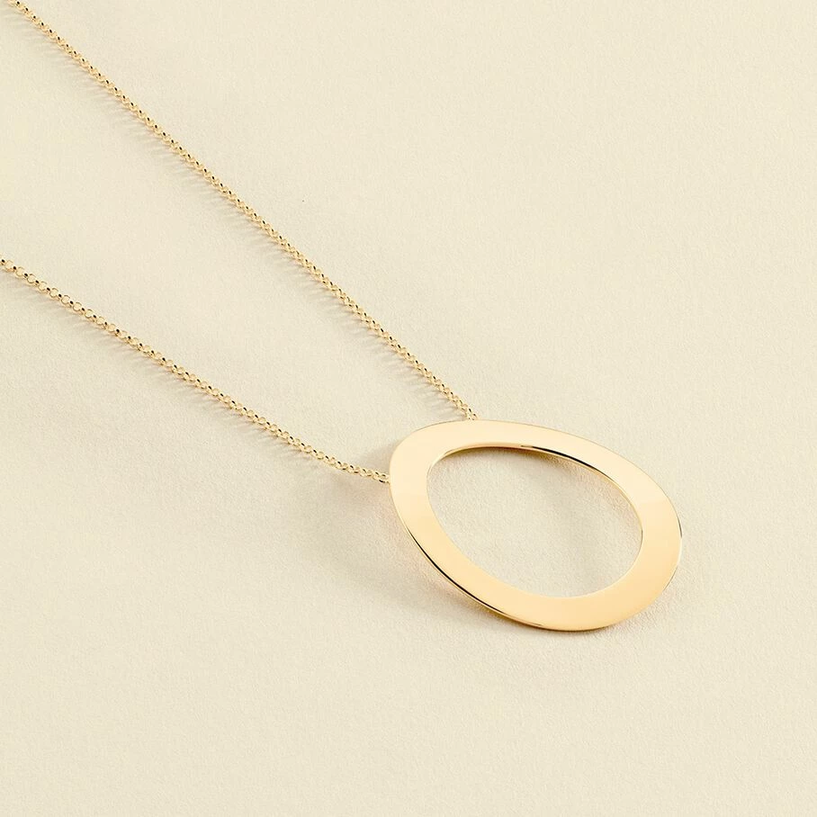 Sautoir en argent véritable doré 750/1000 orné d’un anneau plat évidé