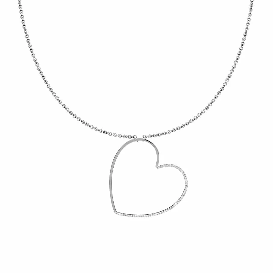 Sautoir en argent véritable orné d’un cœur évidé pavé d’oxydes de zirconium
